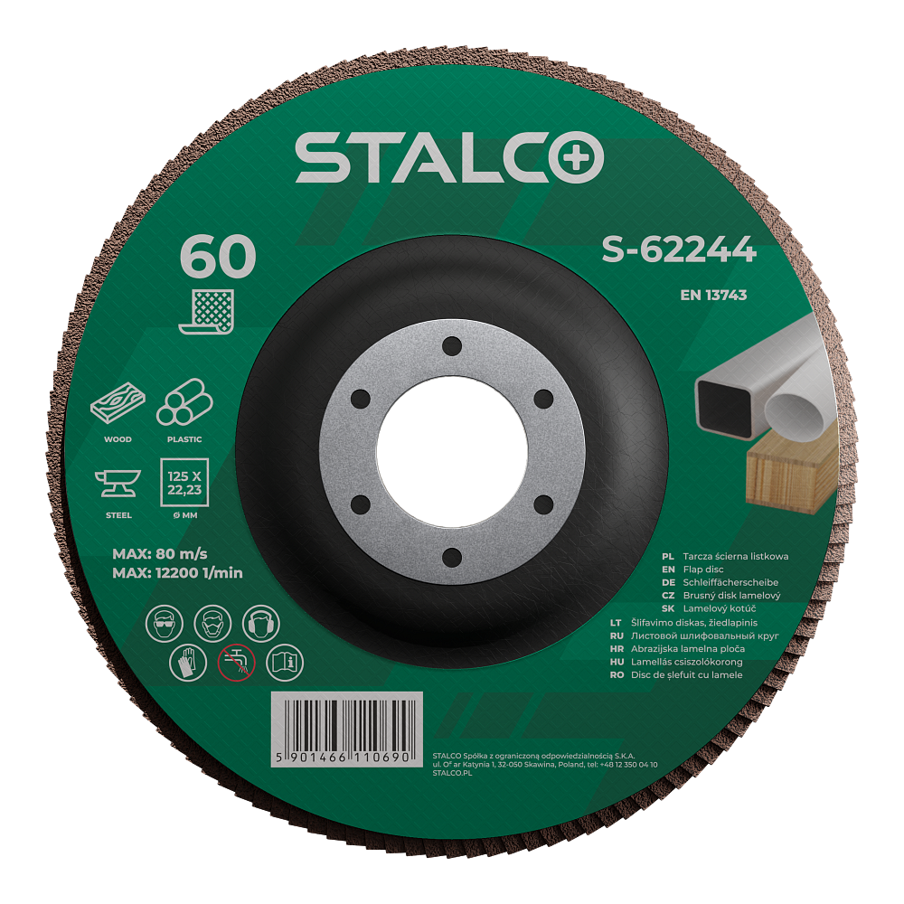 - S-62250 Brusný disk lamelový, pr.125 x 22,23 mm ; zrnitost 100 "STALCO PREMIUM"