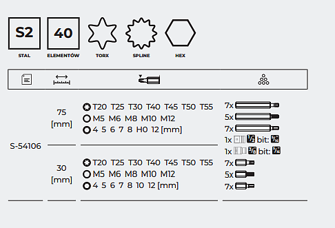 - S-54106 Sada bitů TORX - HEX - SPLINE "STALCO"
